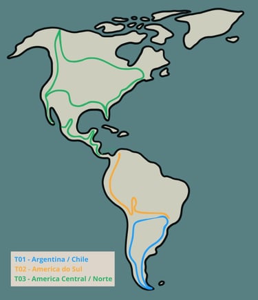 Morando no carro, já rodamos mais de 20mil km pelo Sul da América do Sul (T01 na imagem), chegando até o Fim do Mundo, a famosa cidade do Ushuaia, na Argentina, passando pela Carretera Austral e a Antártida Chilena, no Chile.